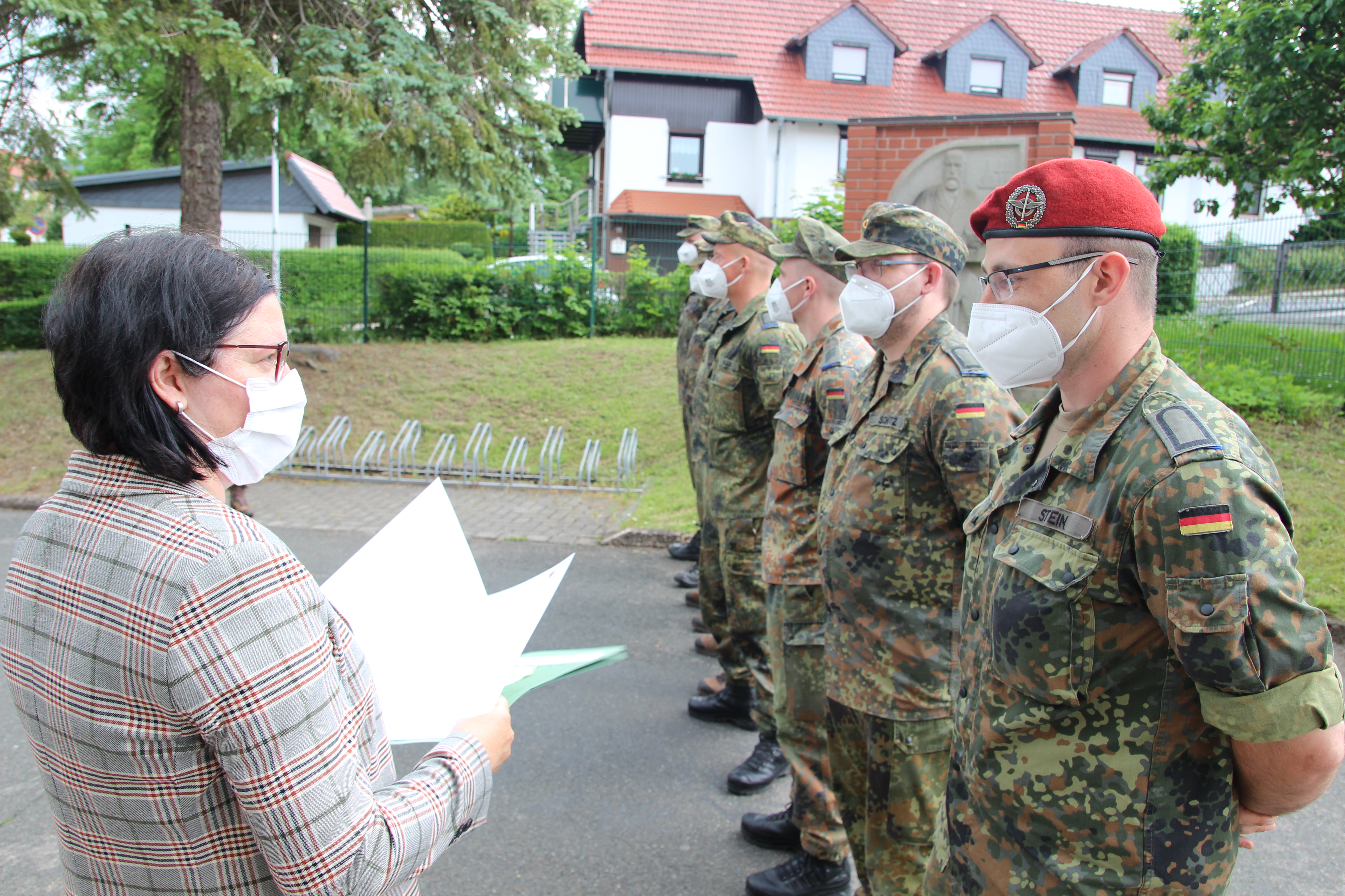 Mit großem Dank überreichte die Dezernentin Urkunden im Namen des Landrates sowie Präsentkörbe an die Soldaten.