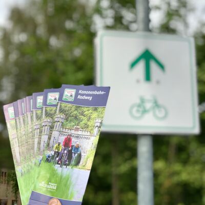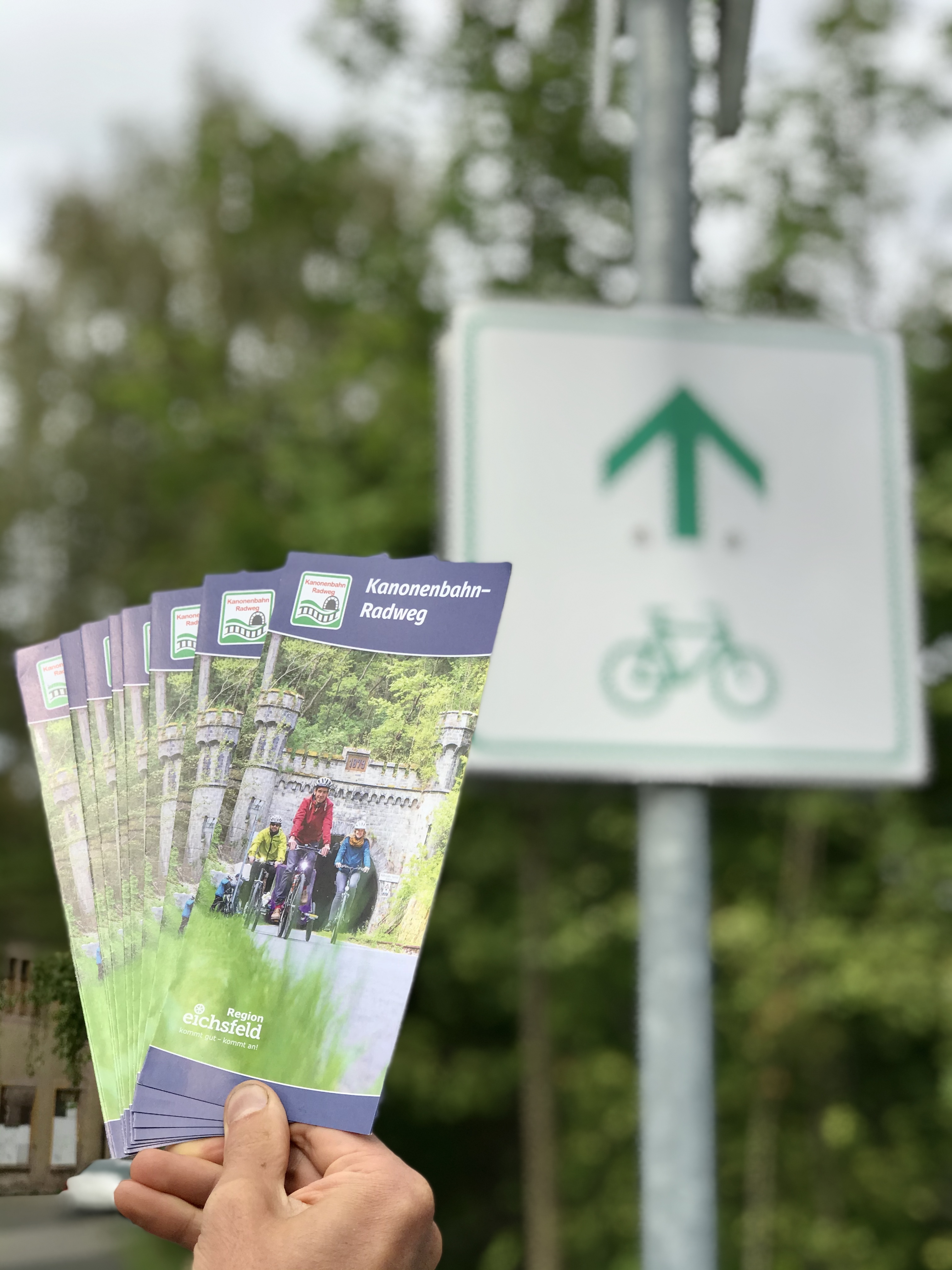 Damit die Radfahrer aus nah und fern nun auch kompakte Informationen zum Radweg erhalten, hat das Referat Kreisentwicklung des Landkreises Eichsfeld in Zusammenarbeit mit der Stadt Dingelstädt und dem HVE Eichsfeld Touristk e. V. jetzt eine Neuauflage des Flyers zum Kanonenbahn-Radweg herausgegeben. Der Flyer bildet die Einzigartigkeit des Radweges ab, macht Lust aufs Entdecken und stellt auch die interessantesten Punkte am Radweg kurz vor. Vertiefende Informationen können zusätzlich über einen QR-Code auf dem Flyer abgerufen werden.